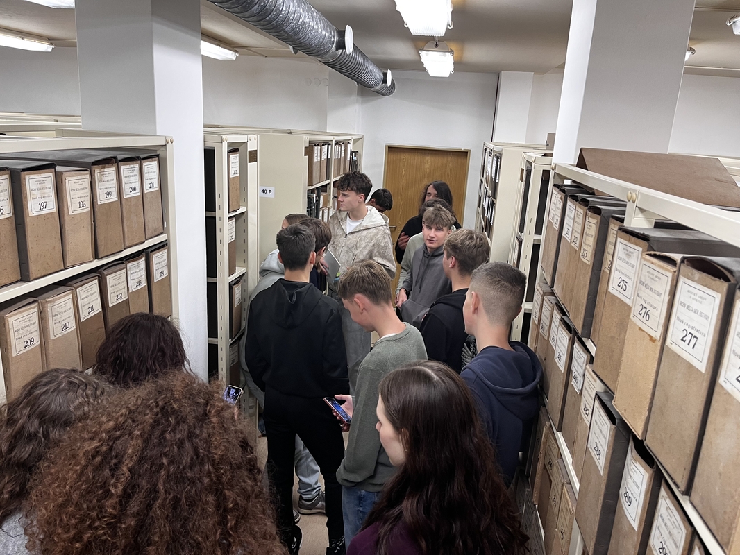 V říjnu se studenti prvního ročníku a kvinty A účastnili zajímavé exkurze, která dokumentovala historii našeho města. Pan průvodce gymnazistům poodhalil, v čem spočívá práce historika, k čemu slouží a v minulosti sloužila instituce (archiv) a jaká je její struktura. K vidění byly vzácné listiny, např. ta, kterou vydal našemu městu císař Karel IV., dále katastrální mapy, kroniky či staré pečetě a pečetidla ze 17. století. Po úvodní přednášce jsme se s panem archivářem vydali do badatelny a studovny, kde jsme měli možnost vyzkoušet si vyhledávání materiálů v digitalizované podobě. Na závěr exkurze čekala studenty prohlídka depozitáře.