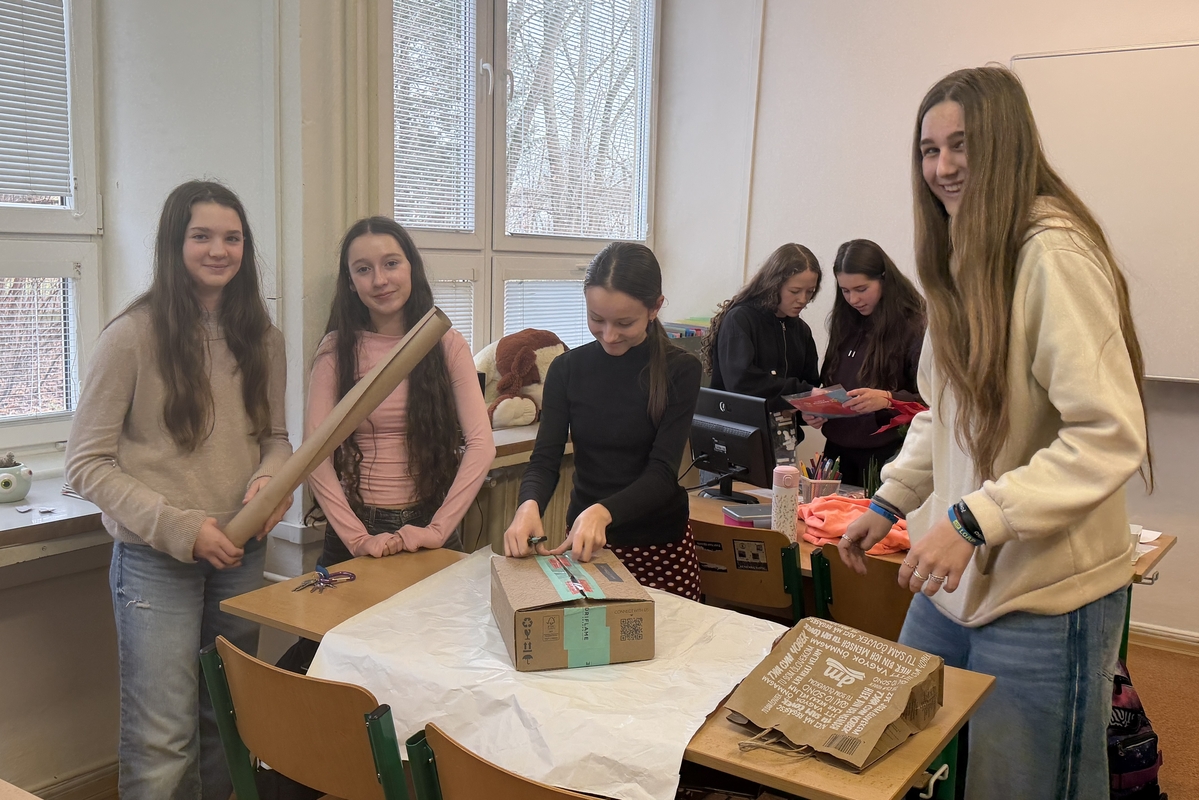 Letos se do sbírky zapojilo hned několik tříd – 2B8, 3A8, 5A8, 5B8, 2A4 a 7A8 – a desítky pečlivě zabalených krabic už putují ke svým příjemcům, dětem od batolat až po dospívající. Velkou radost nám také udělali loňští maturanti ze třídy 4A4, kteří si ve svých vysokoškolských rozvrzích našli chvilku, vrátili se k nám na gymnázium a navázali na tradici, kterou před lety sami započali.