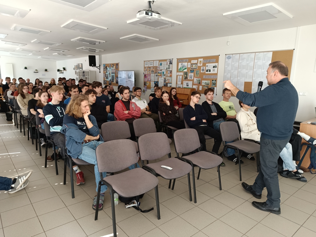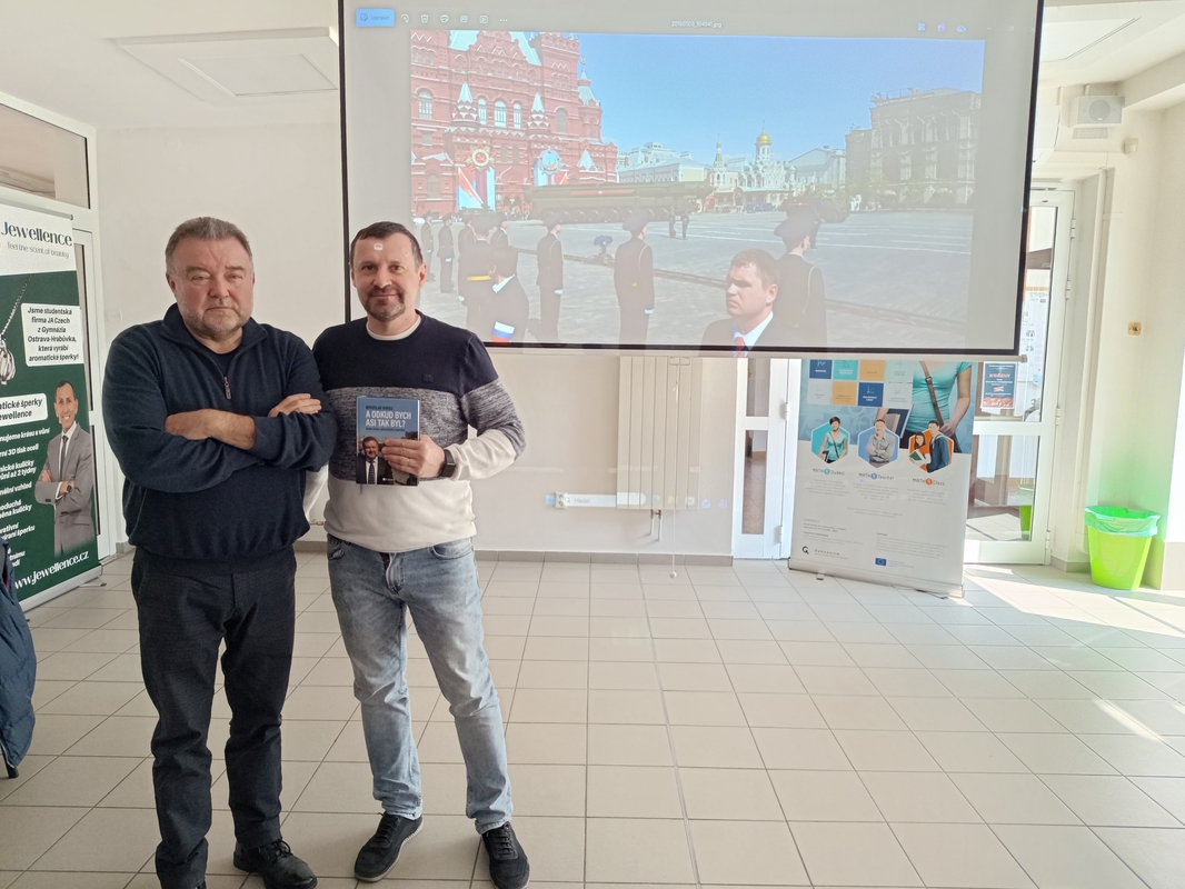 V pátek 17. 4. zavítal na naše gymnázium televizní zpravodaj a bývalý ředitel studia České televize v Ostravě Miroslav Karas. Studentům vyšších ročníků gymnázia přednášel o současném Rusku, putinovském režimu i válce na Ukrajině, okupaci Krymu či bojích na Donbase. Hovořil o svých zpravodajských cestách po největší zemi světa, o životě pastevců sobů, krásách Kamčatky, olympiádě v Soči, chovatelích velbloudů, lovu lososů i ruské mentalitě, postsovětské nostalgii, vztahu k vlastenectví a válce, potlačování protirežimních protestů a policejní brutalitě. Poutavé vyprávění doprovázely fotografie z cest.