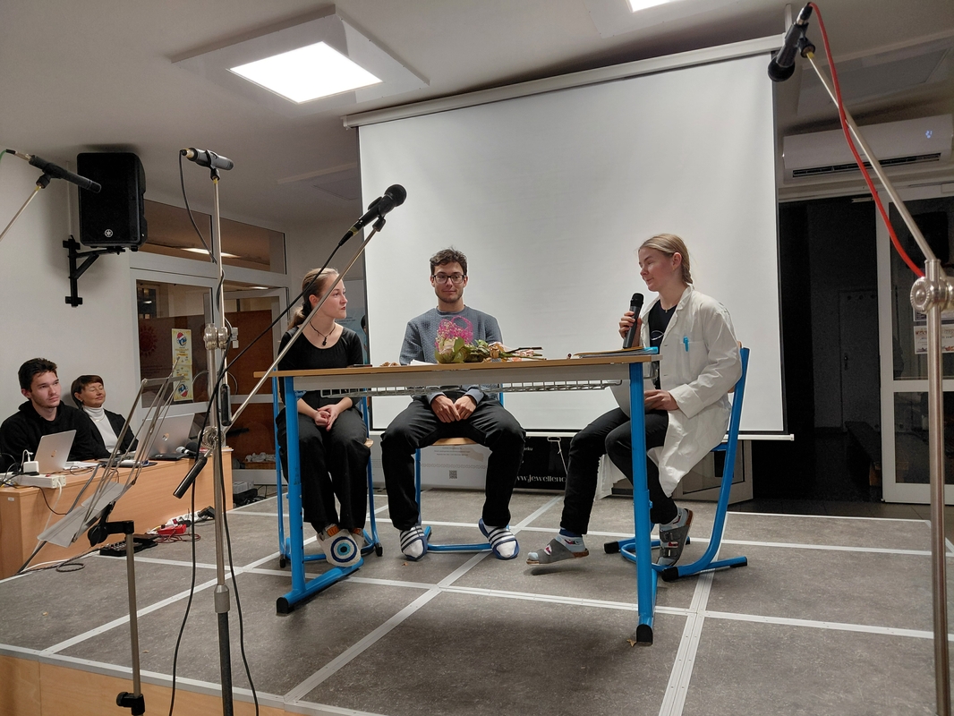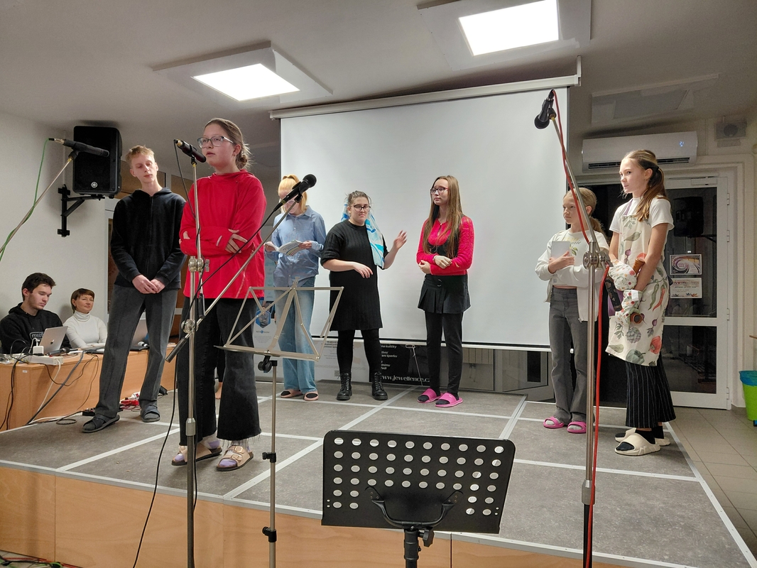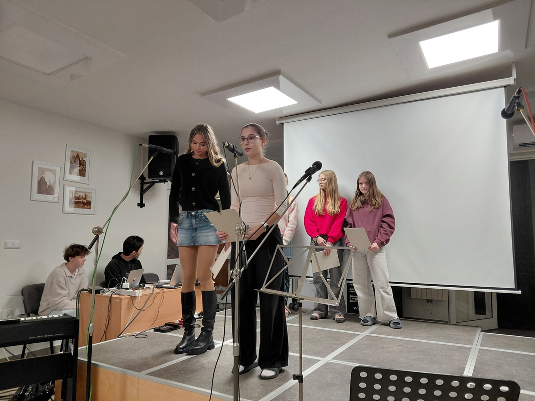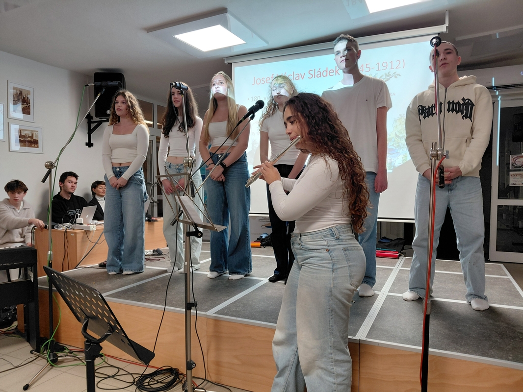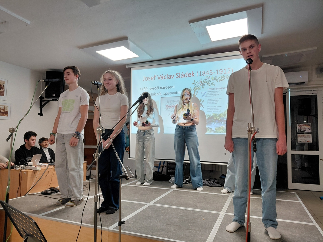 Pěvecký sbor Luminis to rozparádil skladbami Osvobozeného divadla i lidovkami, o divadelní kousky se postaral dramatický kroužek svým soubojem s rádoby koučem, maturanti předvedli seanci u psychologa a studenti tercie A bravurně obsluhovali svou Těžkou Barboru v městečku Mozzarella. To vše ve verších. A verše zazněly i v podání dalších studentů napříč ročníky, ať už se jednalo o Křišťálovou studánku (zvládnutou i v rytmu rapu), podzimní básně, několikajazyčný přednes či třeba Bulata Okudžavu. Hra na tubu či elektrickou kytaru dala programu i hudební rozměr. A že ke kultuře patří třeba i zákusek, smlsli jsme si i na něm v podání studentů kvarty B.