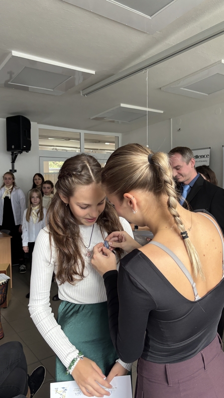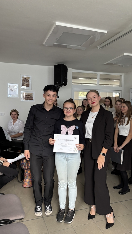 Čtvrtek 2. října 2025 vypadal jako obyčejný, i když slunný podzimní den, ale pro naše primány se proměnil v den mimořádný. To odpoledne totiž byli na půdě školy pasováni do stavu studentského. Od svého třídního učitele a paní ředitelky si převzali pamětní list a samotné pasování provedli průvodci našich primánků, maturanti z oktávy A a čtvrtého ročníku, kteří je doprovodili a byli jim oporou. K dokreslení srdečné a pohodové atmosféry nesměl chybět náš báječný školní sbor.