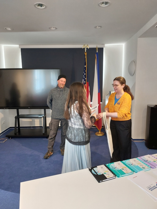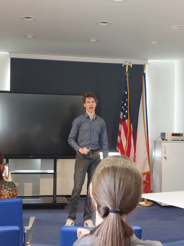 V pátek 17. 4. 2026 se v Americkém centru v Ostravě uskutečnila anglická recitační soutěž Poetry Out Loud, ve které naši školu reprezentovali Anna Zdražilová a Petr Boček v kategorii základní školy a Alice Baborová a Jakub Šochman v kategorii středních škol.