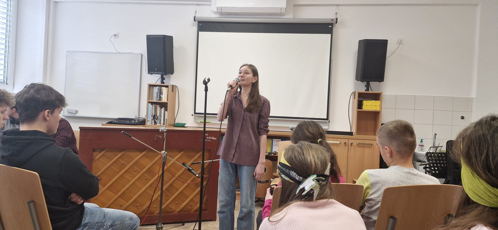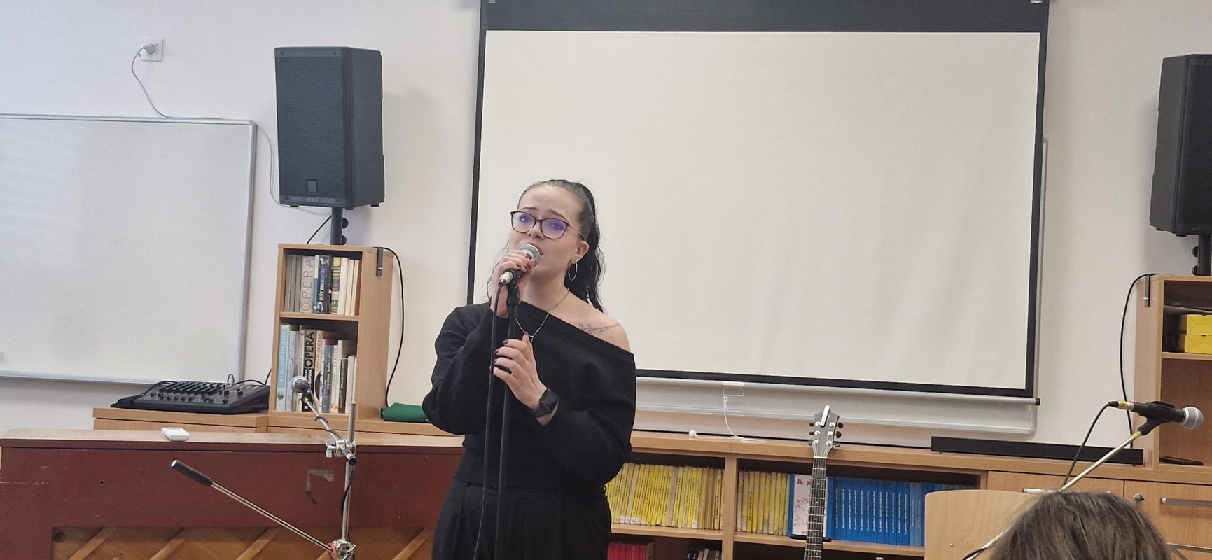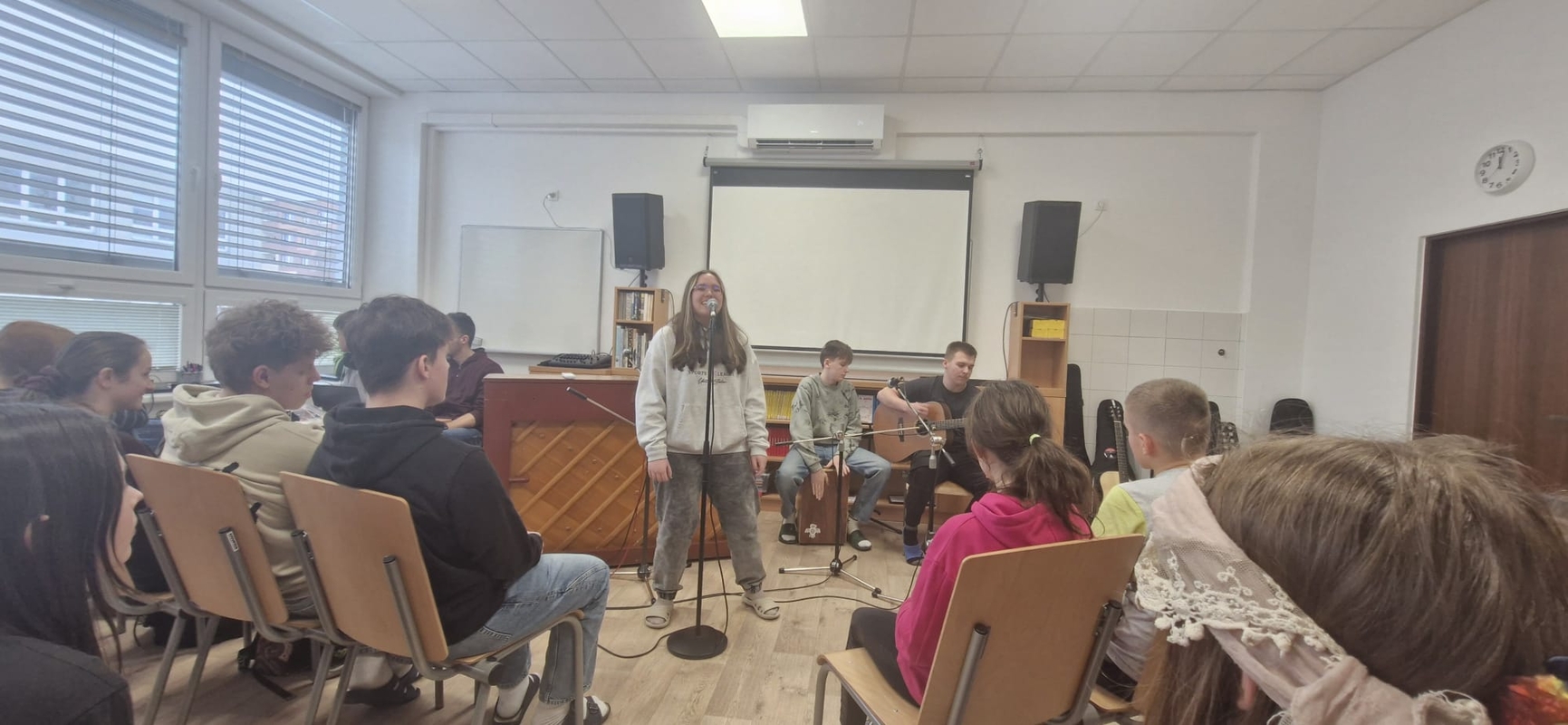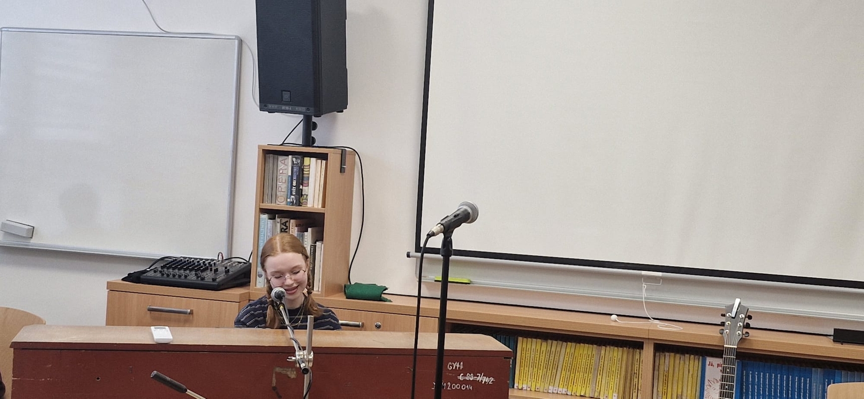 Nejlepší zpěváci naší školy pokřtili novou hudebnu! Nikoliv šampaňským, ale svými úžasnými a mnohdy zcela profesionálními pěveckými a instrumentálními výkony.