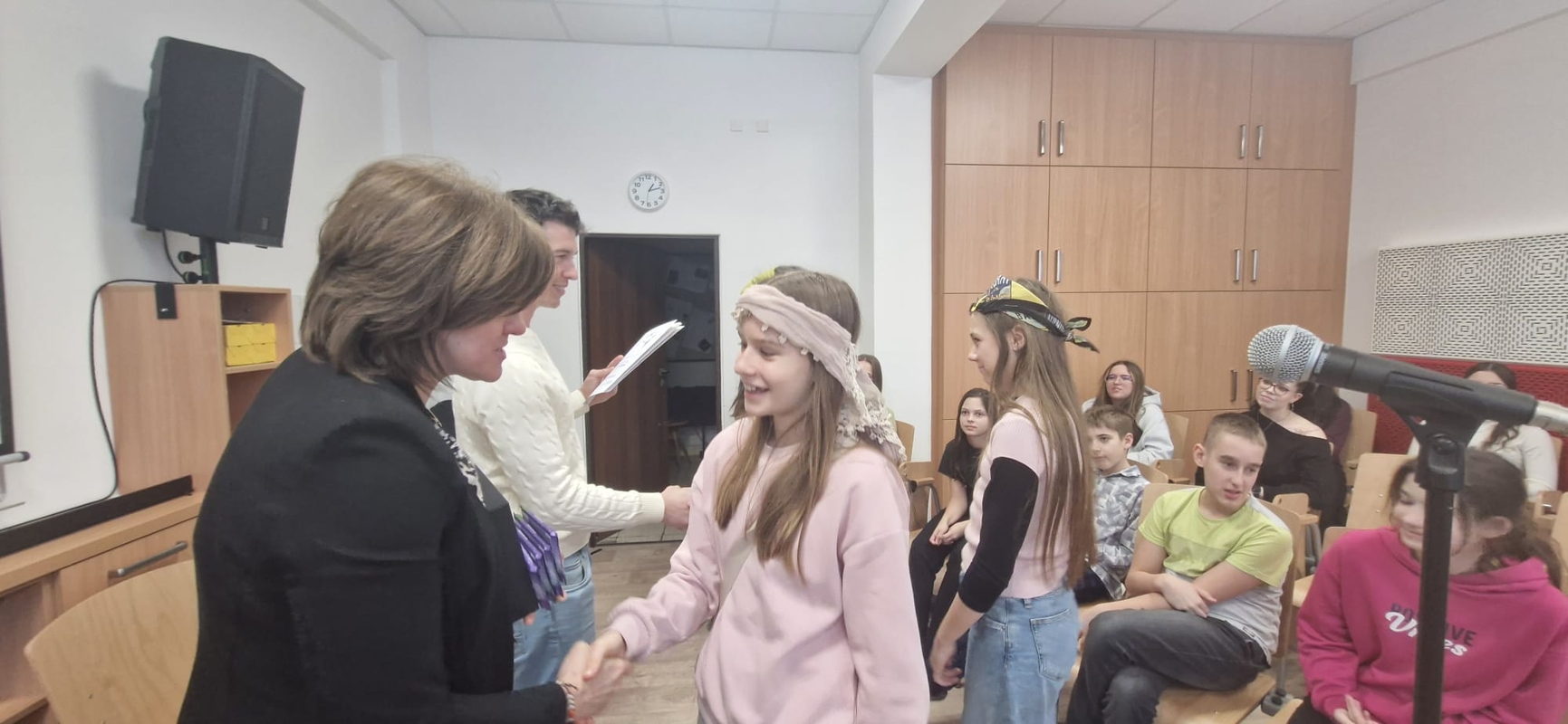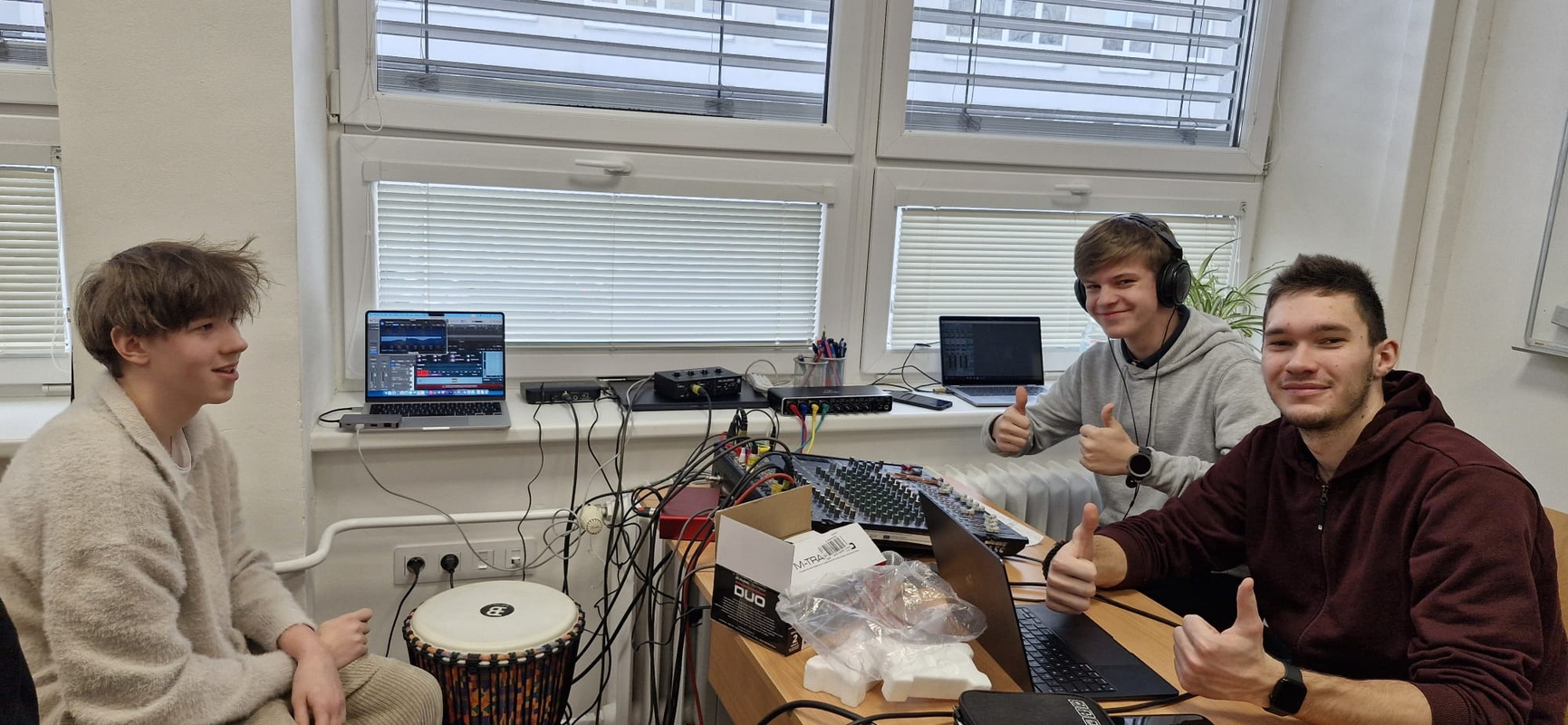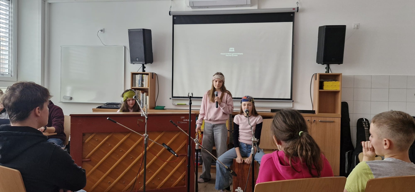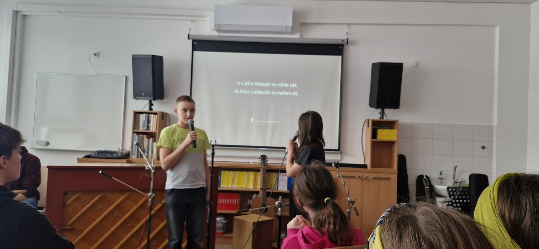 Nejlepší zpěváci naší školy pokřtili novou hudebnu! Nikoliv šampaňským, ale svými úžasnými a mnohdy zcela profesionálními pěveckými a instrumentálními výkony.