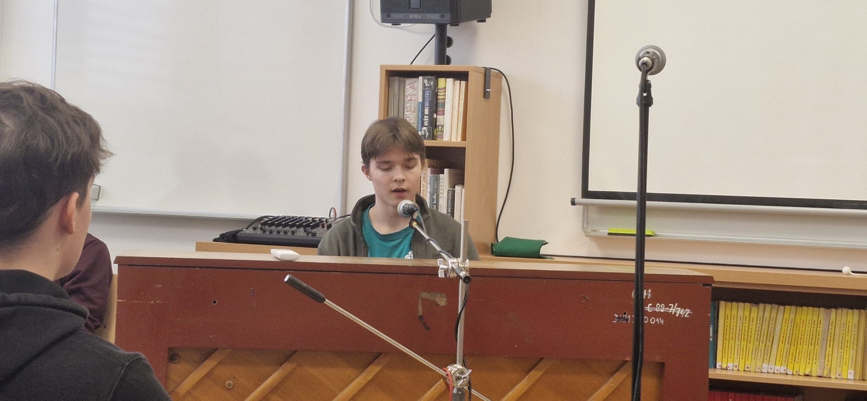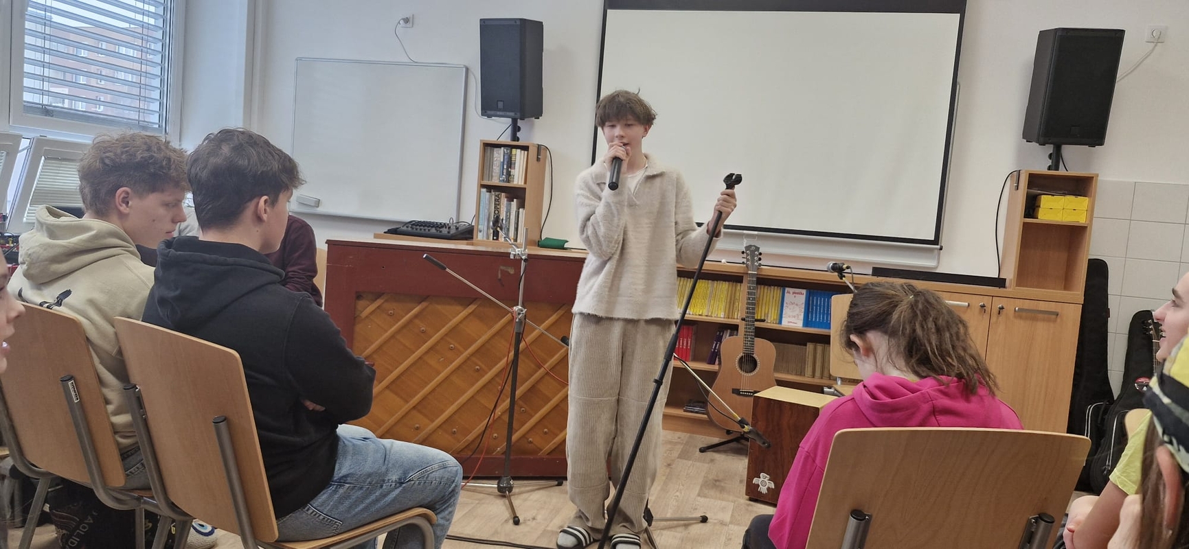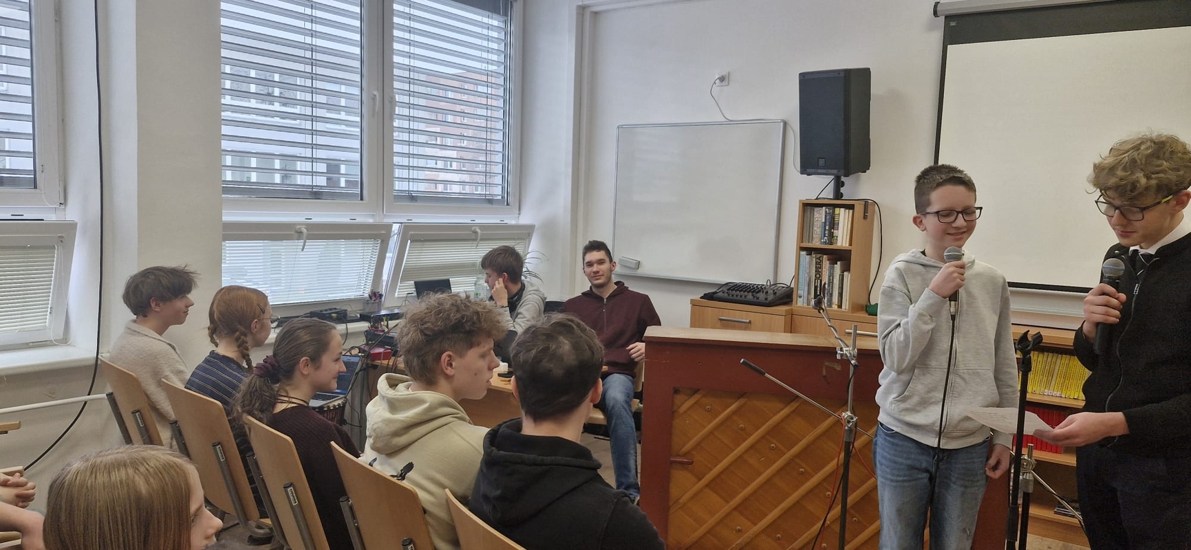 V úterý 3. 2. 2026 se ve školní pěvecké soutěži vystřídalo celkem 18 vystoupení, ve kterých se představilo 26 studentů naší školy. Zazněly písně české i anglické, popové, folkové, šansony i vlastní tvorba. Umělecké výkony byly tak kvalitní, že původně zamýšlené dvě kategorie soutěžících nestačily, a porota ve složení Mgr. Ludmila Červenková, Mgr. Michael Grygar a Mgr. Martina Zelenková tak musela zvolit kategorie tři.