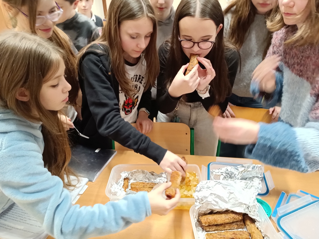 Popis pracovního postupu ve slohu může být pěkná nuda. Ovšem zcela jinak si s ním poradili studenti primy B. Nejenže zvládli detailně popsat nejrůznější kuchařské postupy kuchyní celého světa, ale také se rovnou pustili do vaření, pečení či smažení a své výtvory přinesli ochutnat spolužákům do školy. Studenti tak mohli ochutnat francouzský jablečný koláč nebo tousty, krtkův dort, pusinky, japonské sushi, buldak carbonara, vietnamské závitky, bábovky, kuličky, cookies či muffiny. A co studenty nejvíce bavilo:
