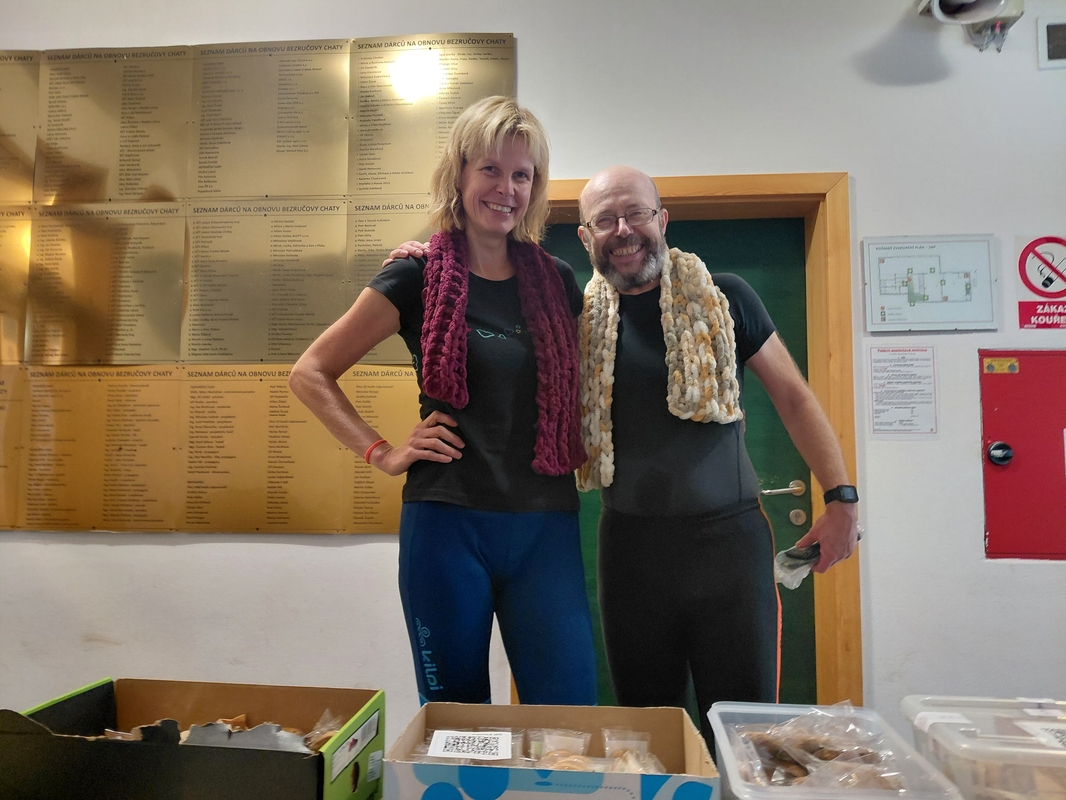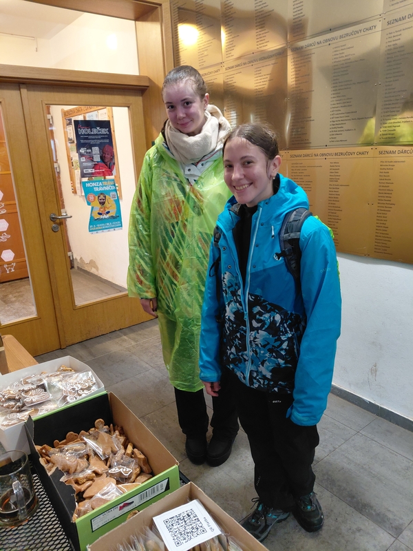 Pamětní listy se vypisovaly jako o závod, perníčky pro sladší den dodávaly energii, suché ponožky z Ondrášku přišly taky vhod. Všichni promočení skrz naskrz, ale s úsměvem a dobrou náladou. Kasička se plnila a ani ve 12 hodin na focení u hladicího bodu jsem nebyla sama. Za mě zázrak! Jsem nesmírně vděčná za naši školu, za studenty, které tady máme, za jejich rodiče, za své kolegy, za absolventy, kteří se vracejí. Ti všichni z akce odkázané kvůli počasí k propadu udělali nezapomenutelný den plný smíchu, energie, pomoci. Není samozřejmostí, aby v den svého volna studenti dobrovolně šli někam, kde vědí, že narazí na své kantory, ještě k tomu do kopce, ještě aby tam přispěli nějakou částkou, a ještě v totální průtrži mračen. Na našem gymnáziu to tak ale prostě funguje. Moc vám všem za to děkuji!