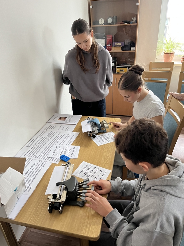 Žáci se dozvěděli o životě Louise Brailla, tvůrce písma pro nevidomé, a o tom, jak jeho vynález změnil svět komunikace. Nevidomý přednášející předvedl i ukázky čtení Braillova písma. Žáci si mohli sami vyzkoušet, jak se písmo „čte“ hmatem a taky práci na speciálním psacím stroji. Po přednášce následovala diskuze, během níž žáci pokládali podnětné otázky, které ukázaly jejich opravdový zájem o život lidí se zrakovým znevýhodněním. Celá akce byla pro všechny velmi přínosná a přiblížila, jak důležitá je dostupnost informací pro každého.