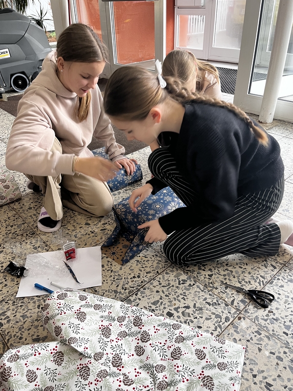 Letos se do sbírky zapojilo hned několik tříd – 2B8, 3A8, 5A8, 5B8, 2A4 a 7A8 – a desítky pečlivě zabalených krabic už putují ke svým příjemcům, dětem od batolat až po dospívající. Velkou radost nám také udělali loňští maturanti ze třídy 4A4, kteří si ve svých vysokoškolských rozvrzích našli chvilku, vrátili se k nám na gymnázium a navázali na tradici, kterou před lety sami započali.