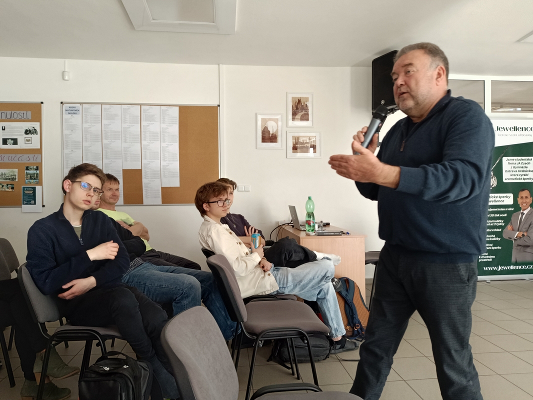V pátek 17. 4. zavítal na naše gymnázium televizní zpravodaj a bývalý ředitel studia České televize v Ostravě Miroslav Karas. Studentům vyšších ročníků gymnázia přednášel o současném Rusku, putinovském režimu i válce na Ukrajině, okupaci Krymu či bojích na Donbase. Hovořil o svých zpravodajských cestách po největší zemi světa, o životě pastevců sobů, krásách Kamčatky, olympiádě v Soči, chovatelích velbloudů, lovu lososů i ruské mentalitě, postsovětské nostalgii, vztahu k vlastenectví a válce, potlačování protirežimních protestů a policejní brutalitě. Poutavé vyprávění doprovázely fotografie z cest.