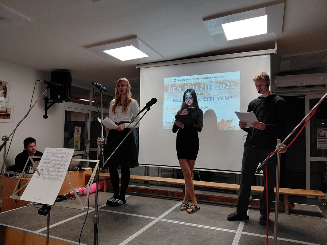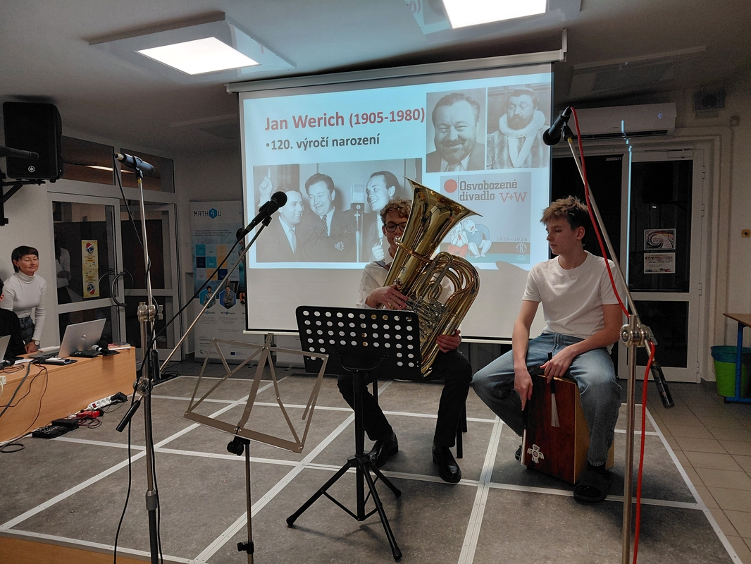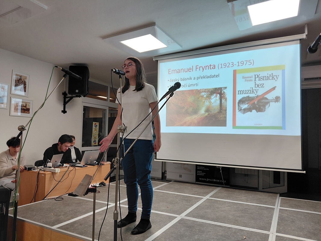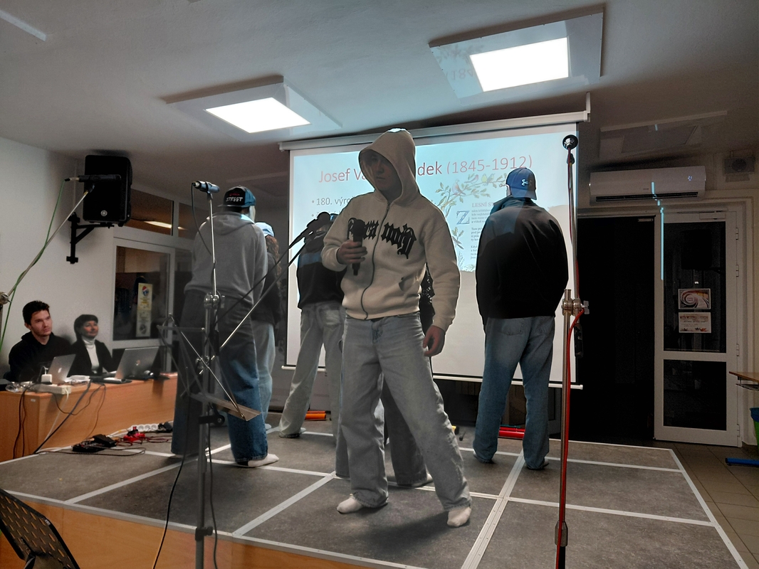 Pěvecký sbor Luminis to rozparádil skladbami Osvobozeného divadla i lidovkami, o divadelní kousky se postaral dramatický kroužek svým soubojem s rádoby koučem, maturanti předvedli seanci u psychologa a studenti tercie A bravurně obsluhovali svou Těžkou Barboru v městečku Mozzarella. To vše ve verších. A verše zazněly i v podání dalších studentů napříč ročníky, ať už se jednalo o Křišťálovou studánku (zvládnutou i v rytmu rapu), podzimní básně, několikajazyčný přednes či třeba Bulata Okudžavu. Hra na tubu či elektrickou kytaru dala programu i hudební rozměr. A že ke kultuře patří třeba i zákusek, smlsli jsme si i na něm v podání studentů kvarty B.