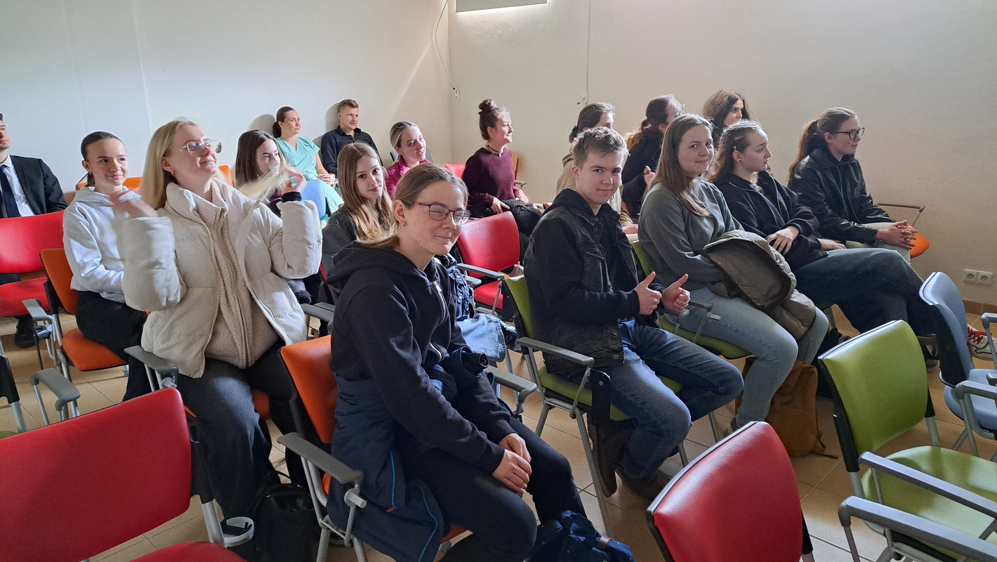 Se septimou A jsme navštívili krajský soud v centru Ostravy, kde jsme absolvovali hned dvě zajímavé besedy. Ta první proběhla s trestním soudcem - mj. absolventem našeho gymnázia. Vedle fundované přednášky a zasvěcení studentů do rozličných aspektů trestního řízení byly přínosné i odpovědi na naše věcné dotazy. Program byl doplněn také o konkrétní pikantní i úsměvné příklady ze soudní praxe. Po setkání se soudcem následovala neméně zajímavá beseda s příslušníkem celní správy. Jeho poutavý výklad okořenila vskutku výmluvná videa z reálných zásahů celní správy proti pašerákům a dalším osobám páchajícím trestnou činnost.