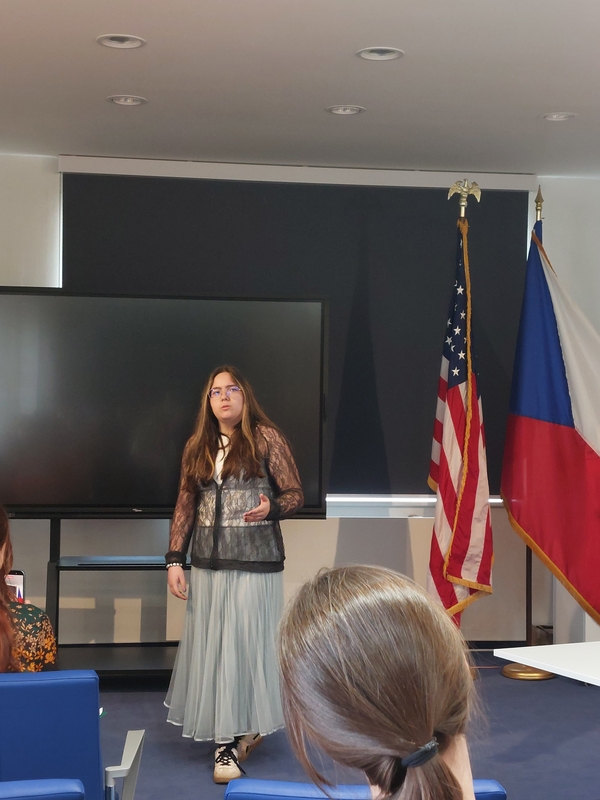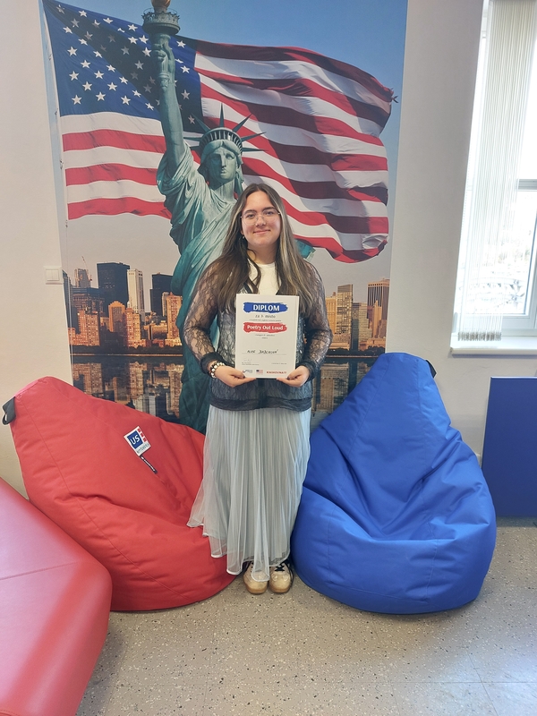 V pátek 17. 4. 2026 se v Americkém centru v Ostravě uskutečnila anglická recitační soutěž Poetry Out Loud, ve které naši školu reprezentovali Anna Zdražilová a Petr Boček v kategorii základní školy a Alice Baborová a Jakub Šochman v kategorii středních škol.