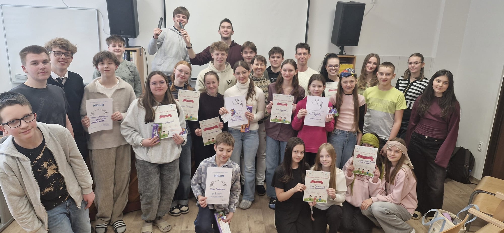V úterý 3. 2. 2026 se ve školní pěvecké soutěži vystřídalo celkem 18 vystoupení, ve kterých se představilo 26 studentů naší školy. Zazněly písně české i anglické, popové, folkové, šansony i vlastní tvorba. Umělecké výkony byly tak kvalitní, že původně zamýšlené dvě kategorie soutěžících nestačily, a porota ve složení Mgr. Ludmila Červenková, Mgr. Michael Grygar a Mgr. Martina Zelenková tak musela zvolit kategorie tři.