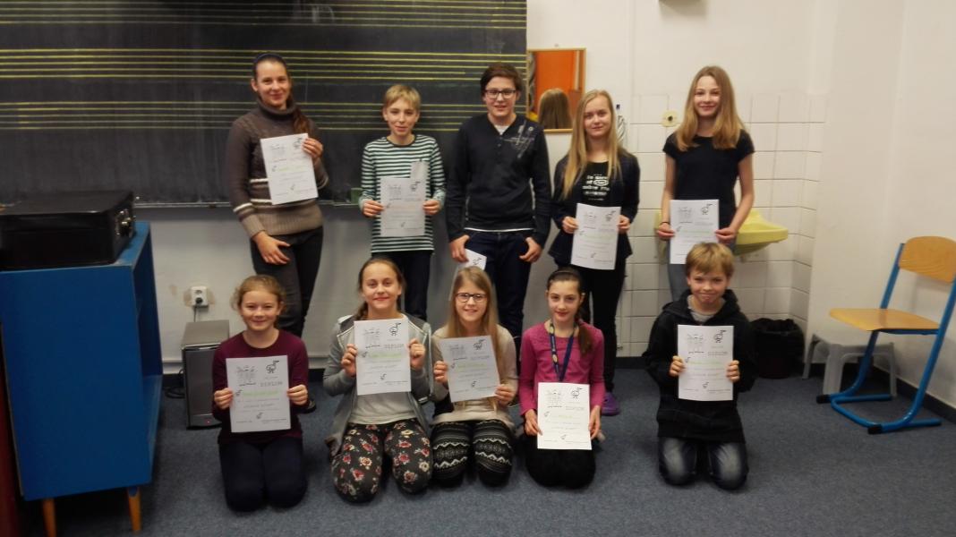 Soutěž probíhala ve dvou kategoriích. V nejmladší kategorii, tvořené žáky prim, získali první místo Eliška Kašíková a David Vlček, oba z 1B8. Druhé místo obsadila Vanda Pilařová z 1B8. Na třetím místě skončily Adéla Kovaříková z 1A8 a Eliška Pszczólková z 1B8.