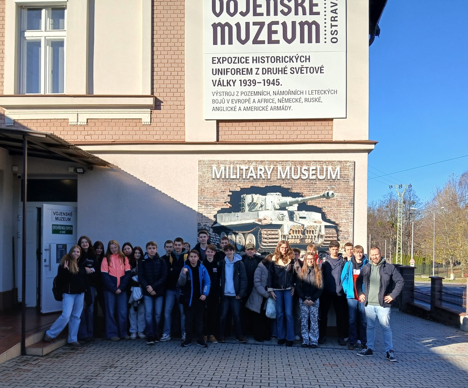 Obě kvarty navštívily Vojenské muzeum ve Slezské Ostravě, které se může pochlubit mimořádnou sbírkou uniforem, dobových dokumentů a předmětů z období II. světové války. Komentovaná prohlídka provázela studenty chronologicky od útoku na Polsko až po dobytí Berlína.