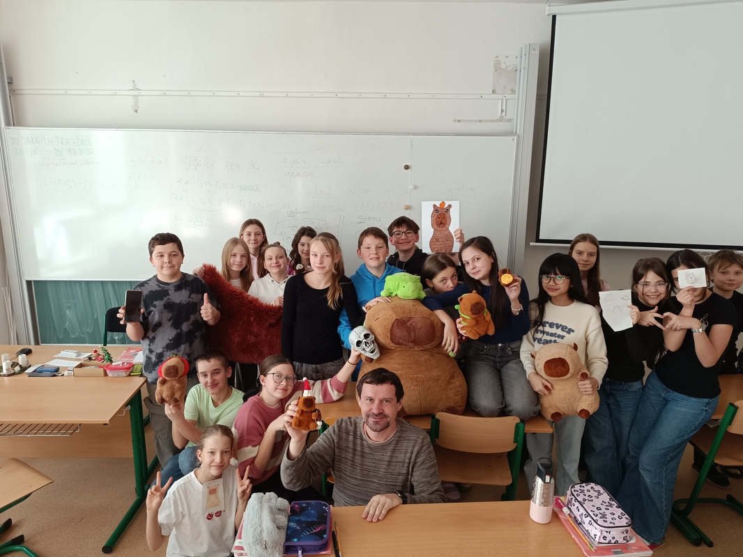 Kapybara je nejen mrštný běžec a největší hlodavec na světě, ale také skvělý kamarád. V primě B si studenti vybrali právě tohoto tvora za svého třídního maskota. A není se čemu divit, kapybara jim bude fandit na turnajích, bude jim držet palce při zkoušeních a písemkách nebo je potěší, když jim je smutno. Hodně radosti s kapybarou.