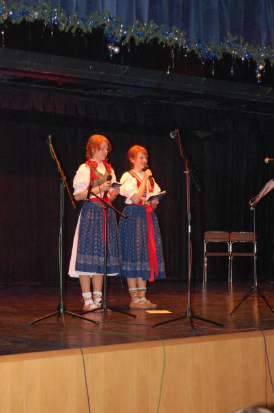 O pěvecké a zároveň taneční folklorní zpestření koncertu se postarali jak členové LSPT Ondřejnica, Kristýna Kučová, 1A4, Markéta Šindelová, 1A4, Kateřina Korpasová, 3A4, Jakub Choleva, 1A4 a David Šperlín, 8B8 - spolu se svými tanečními partnery, tak žáci z 3B8, 5B8 a 6B8, kteří nám v tradičním lidovém duchu zazpívali a zatančili pásmo koled. Na housle doprovázel Vojta Kuldan, na altovou flétnu Matěj Spilko. Rádi bychom tímto poděkovali členům Moravského dětského folklorního souboru Holúbek za zapůjčení krojů.