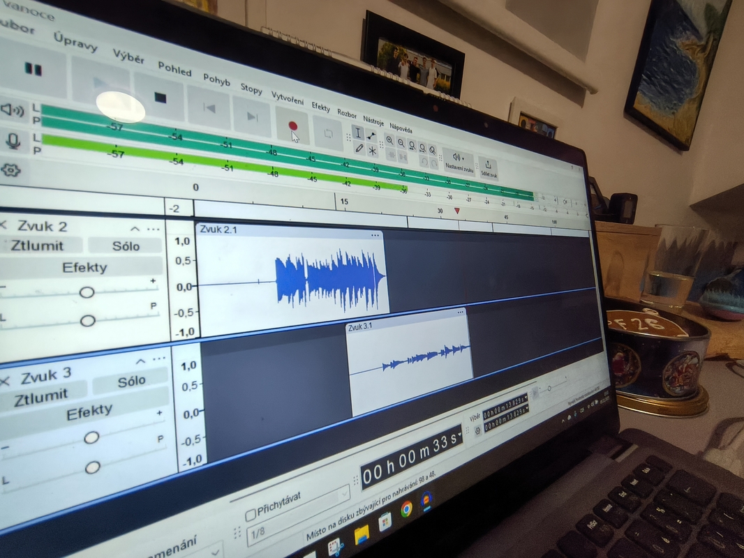 Nápad na vánoční zvonění jsem se odhodlala vyjádřit někdy na začátku září. Samotná kytara problémem nebyla, potřebovala jsem jen někoho, kdo by mi pomohl to celé natočit. Producentem se mi stal Tomáš Rokyta (jestli dobrovolně, nebo nedobrovolně, to nechám na vaší fantazii) a po dlouhých dvaceti minutách byla naše nahrávka Slunečného hrobu na světě. Následoval ještě proces schvalování, zasedání studentské rady a jasný verdikt: zvonění bude, a to v 7:50.